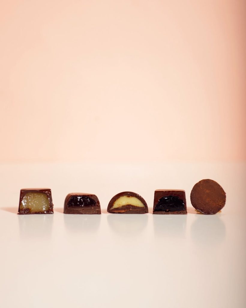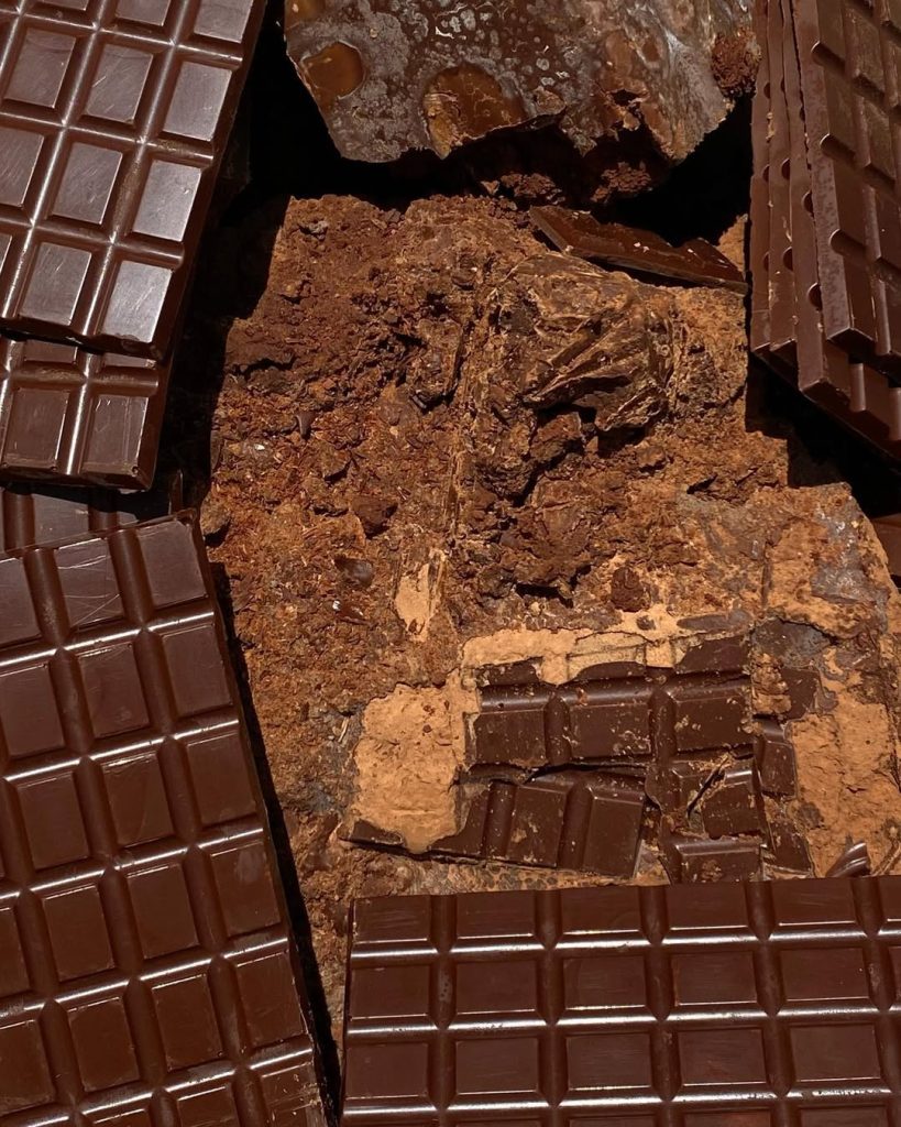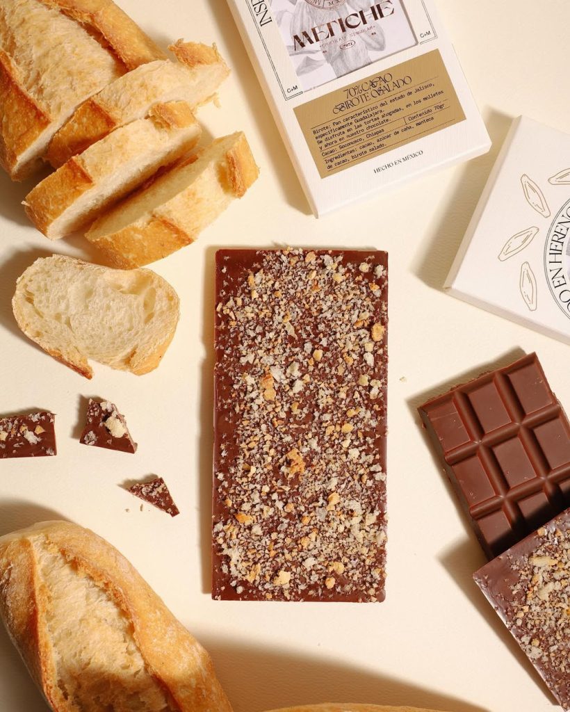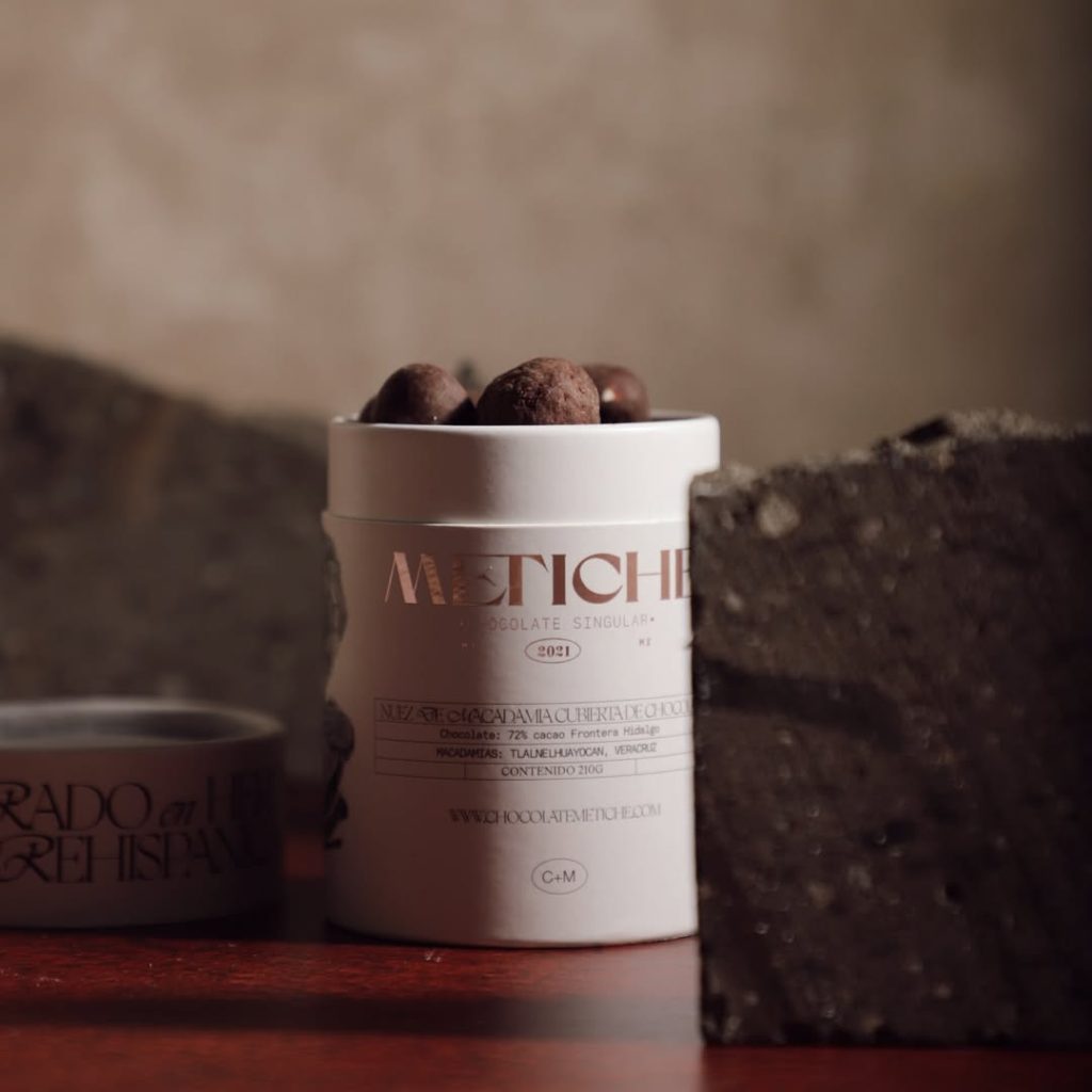 Tostado, molido, acariciado por azúcar, por cardamomo, por piloncillo o mezcal espadín. Metiche transforma el grano en arte: desde la tierra, fragmentos de historia y de un idioma ancestral despiertan los sentidos en cada mordida. En flor de naranja, en jengibre confitado, en rosas de Castilla… la tierra oscura donde el cacao duerme se vuelve barra que se quiebra.