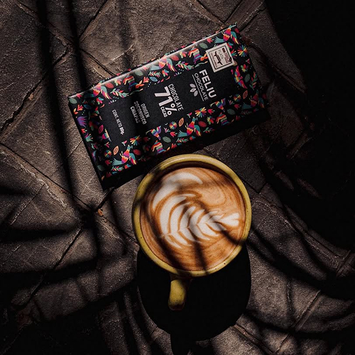 Ese instante en el que el chocolate hace presencia en los labios, una locura, entre euforia y silencios del deseo inexpresable. El sabor de Feliu, sin pedir permiso, se instala en ti como una sombra, desbordando el dulce abandono de la experiencia. Nacido de la tierra mexicana, un cacao cultivado entre secretos y silencios, donde cada grano es una promesa callada, en donde el proceso de la vida se interpreta entre el ser y el no pretender, siendo verdadero. Deshaciéndose la suavidad del cacao en tu boca, reconoces las notas del origen, tal como un suspiro profundo y extraño.